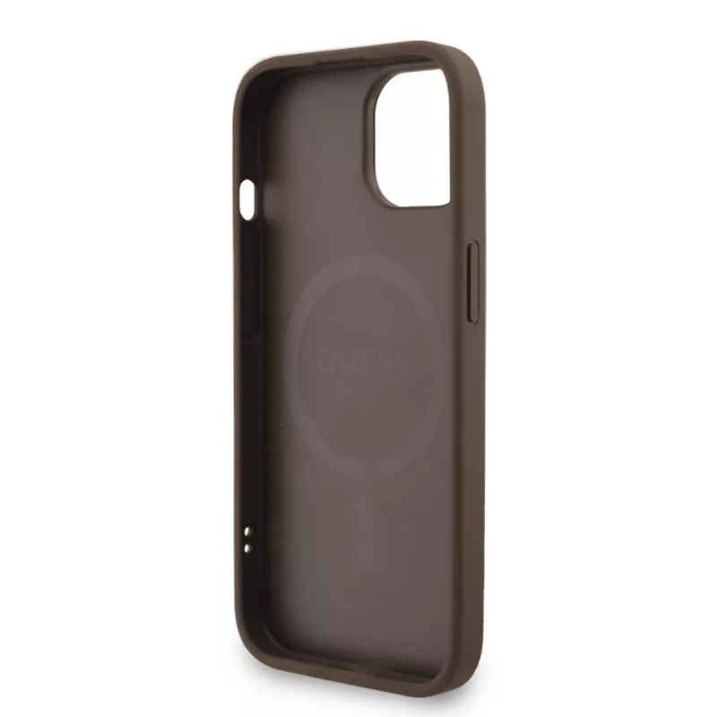 Guess PU Leather MagSafe Apple iPhone 16 (6.1) hátlapvédő tok barna (GUHMP16SP4GREGSW)