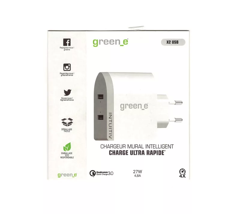 Green_e Intuitive Station Qualcomm Quick charge 3.0 hálózati töltő 2x USB-A csatlakozóval, 3A 27W
