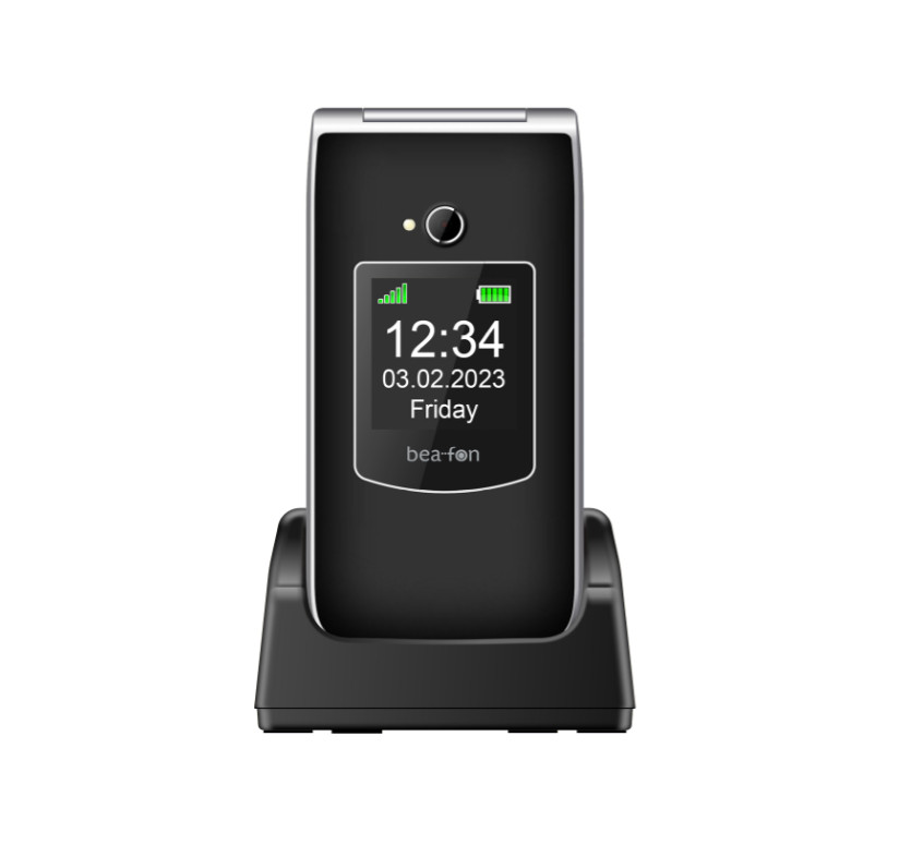 Beafon SL605 (2025) kártyafüggetlen kinyitható mobiltelefon SOS gombbal, dokkolóval, fekete